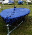 Die Flachpersenning schuetzt Ihren 505er vor Schmutz und Regen. Die Flachpersenning liegt auf dem Boot (z.B. Deck) auf. Das Material ist beschichtetes Gewebe, das in der Oberflaeche eine textile Struktur hat. Mit einer umlaufenden Reihleine in der Flachpersenning kann die Persenning unterhalb des Suellrandes fuer einen guten Sitz passend gezogen werden. Verstellbare Gurte oder Schlaufen zum Anbringen von Spanngurten sind angenaeht und sorgen weiter fuer einen guten Sitz. Damit Wasser gut von der Persenning ablaufen kann, sollte die Flachpersenning durch die Dirk oder aehnliches etwas angehoben werden. So kann auch Kondensat entweichen. Ein guter, straffer Sitz der Persenning vermeidet groessere Wassersaecke. Dazu sollte auch der Grossbaum oder aehnliches unter der Persenning ueber das Cockpit gelegt werden. Oeffnungen in der Persenning wie fuer Wanten bei verstagten Booten werden mit Steckverschluss verschlossen. Unterbrechungen in der Reihleine werden, ausser an Bug und Heck, durch Schnallenverschluesse geschlossen. Die Mastkrause (Oeffnung fuer den Mast) in der Persenning wird mit Steckverschluss gesichert. Allgemeine Durchlaesse fuer Festmacher sind gesaeumt und die Kanten verstaerkt. Die Oeffnung in der Persenning erfolgt über den Bug. Sie wird mit einem abgedecktem Reissverschluss oder Klett und zusaetzlich mit Schnallen verschlossen. Die Lieferung von Persenningen mit Steuerbord-Einstieg ist ggf. moeglich. Bitte fragen Sie bei uns nach. Die Farbe der Persenning ist blau. Die Lieferzeit der Persenning betraegt bei Lagerware 3 bis 10 Tage, ansonsten 4 bis 8 Wochen. Eine kurze Materialbeschreibung finden Sie hier. Unsere "AGB's". Unsere Versandkosten.
